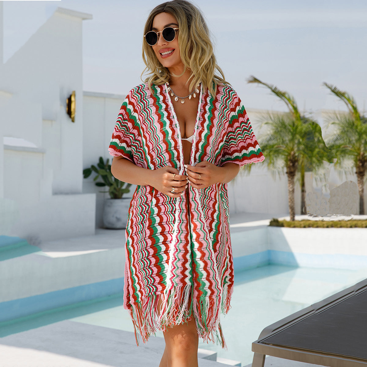 - Fashion Printed Tassel Open Front Swimsuit Cover Up